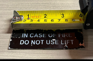 Item Description: PLASTIC SIGNAGE 600MM X 100MM "IN CASE OF FIRE DO NOT USE LIFT" (MOQ 20)