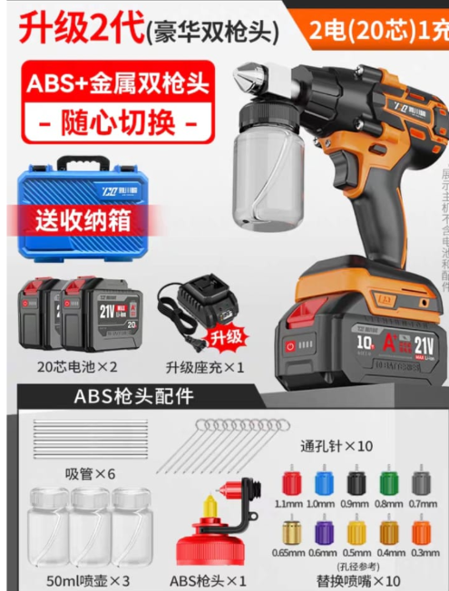 Item Description: Electric Spray Gun - 6 Speed with 2 Lithium Batteries & Charger C/W UK 3 Pin Plug Converter